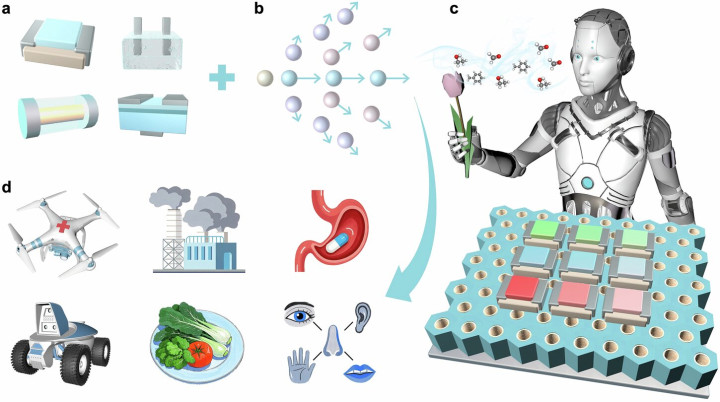 电子鼻在机器人领域的应用示意图。图片来源:npj Robotics (2026)。DOI:10.1038/s44182-025-00071-y
